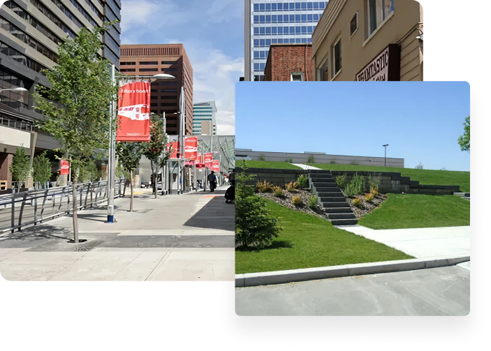 - Site furnishings (benches, trash receptacles, bike racks, and more)